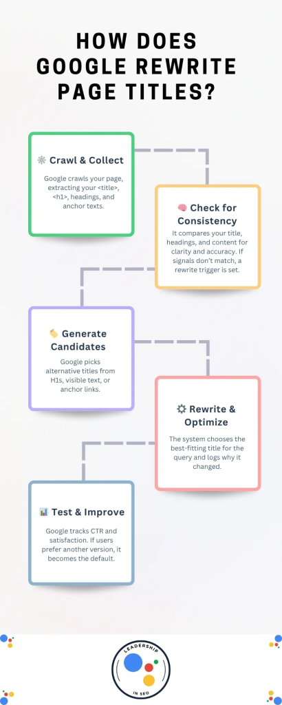 Raksasa pencarian menggunakan pemahaman dokumen, pencocokan kueri, penulisan ulang konten, dan data keterlibatan pengguna untuk menentukan kapan judul atau H1 harus diubah di SERP.